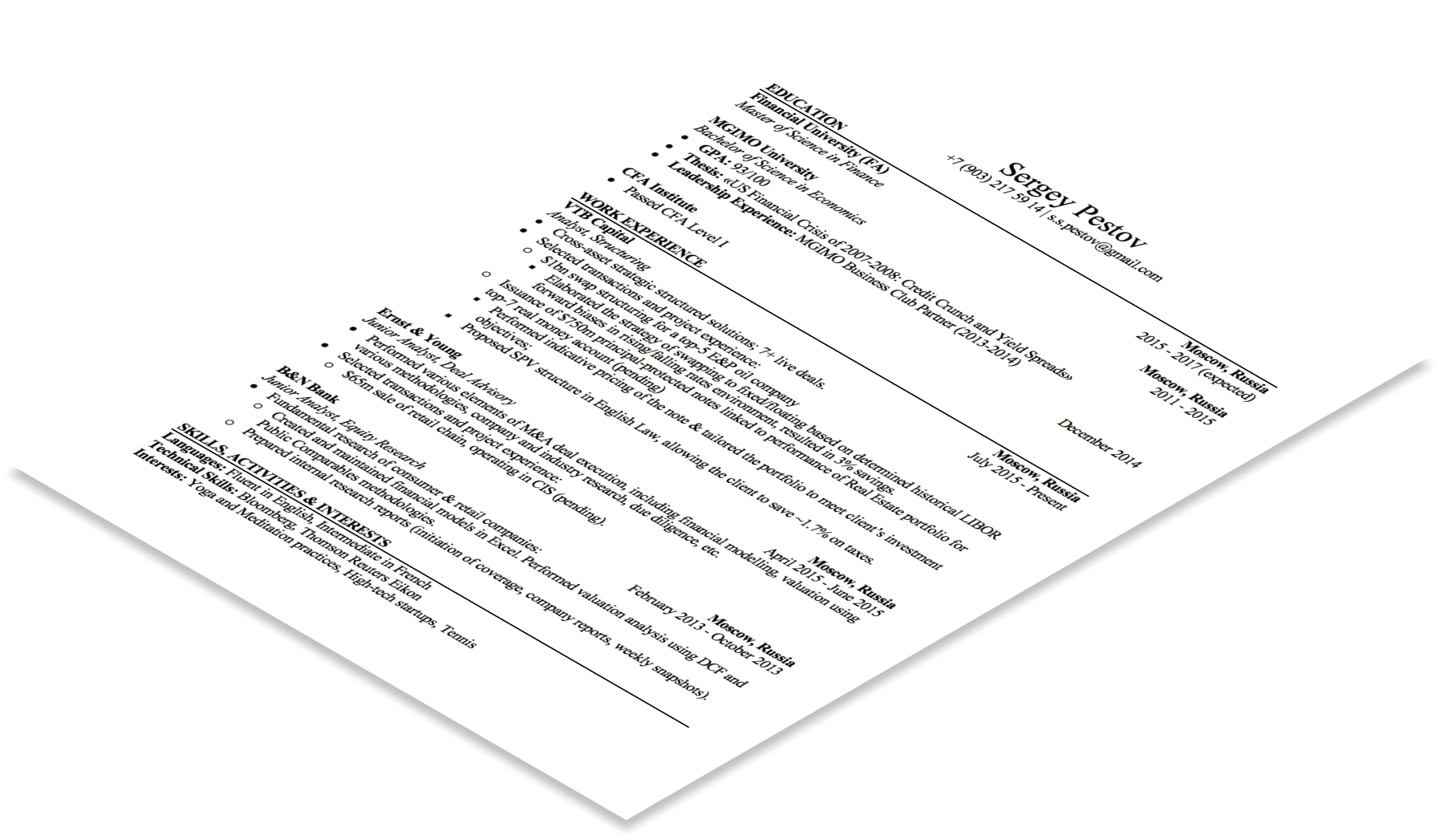 и получите CV, с которым Сергей прошел в Goldman Sachs